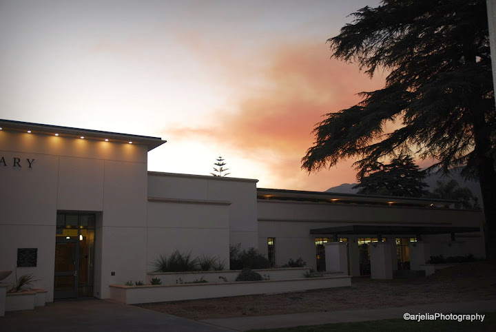 I went on a local old town photo shoot Monday night and caught some pictures with the La Canada fire in the background (the reason why, I think, I may have developed a headache afterwards). I find this architecture so beautiful and love to take pictures of it and people here. The following picture is on the ground as you walk towards the entrance of the library.